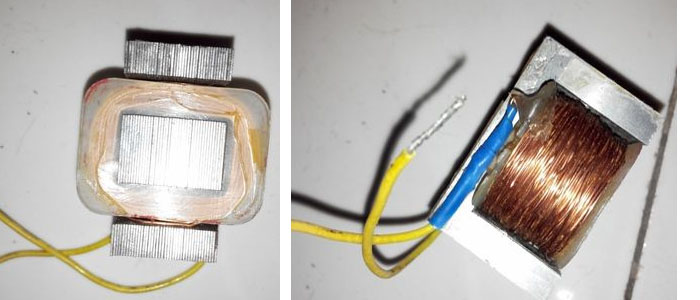 5、變壓器的重新組裝,想要設計好用的12V強力電磁鐵,那麽香蕉在线视频视频的組裝就不能跟之前一樣,應該把鐵芯突出的那一邊全部放在一邊,然後把線圈套在鐵芯上麵。